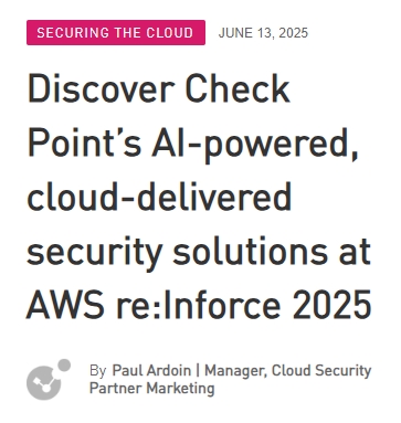所以,千萬不要錯過在 AWS re:Inforce 大會 633 號展位與 Check Point 見面的機會(屆時您可以參加我們的抽獎,贏取 Ray-Ban Meta 智能眼鏡!)。 Check Point 的首要任務是防禦威脅並降低風險,無論您的工作負載位於何處。歡迎來到我們,觀看演示,與我們探討安全策略,並了解 Check Point 解決方案如何與數十項 AWS 服務無縫整合。同時,您也可以查看 Check Point 剛發布的《雲端安全報告》,該報告從首席資訊安全長 (CISO) 的角度闡述了雲端安全的現狀。點擊此處下載報告,了解當前威脅,以便更好地保護當今的現代雲端和 AWS 環境。