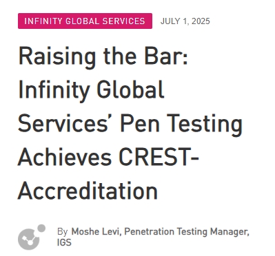 IGS 的滲透測試服務由經驗豐富的專家團隊提供,現已獲得 CREST 認證,這是全球公認的卓越道德安全測試標準。此認證是對 IGS 評估品質、方法和完整性的認可,確保客戶獲得符合最高行業標準的值得信賴、高保證的測試。